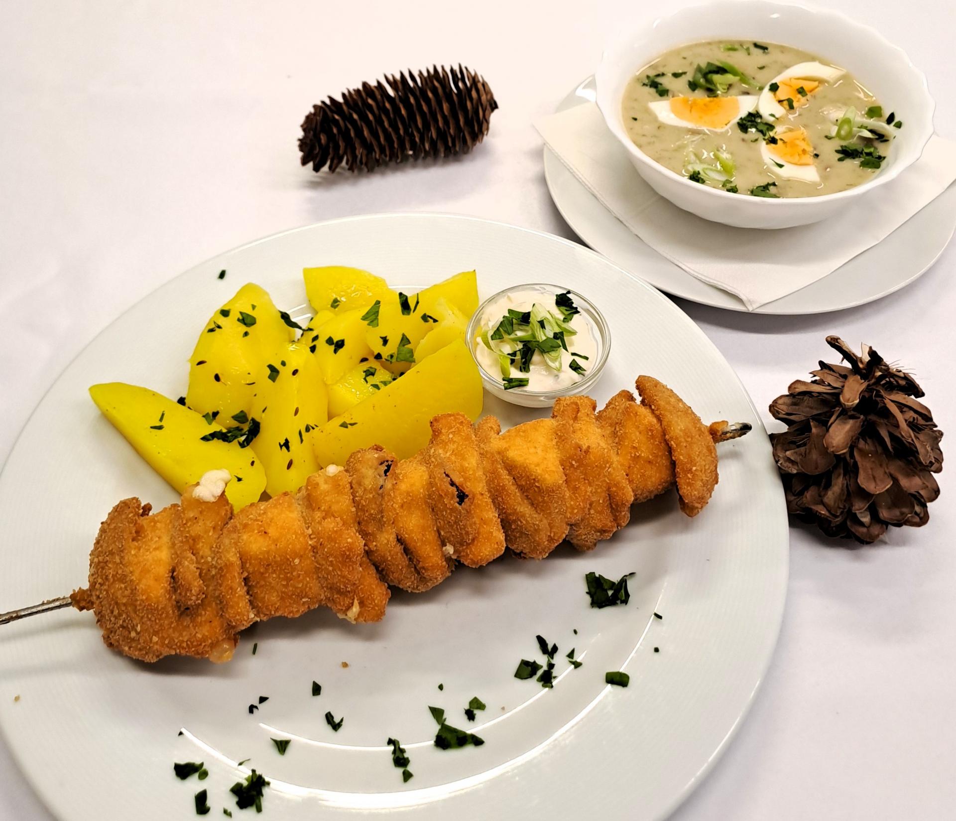 Dnes, 08.01. 2026, Vás na denním menu čeká: Jihočeská kulajda s vejcem a Sýrový špíz s brambory a...