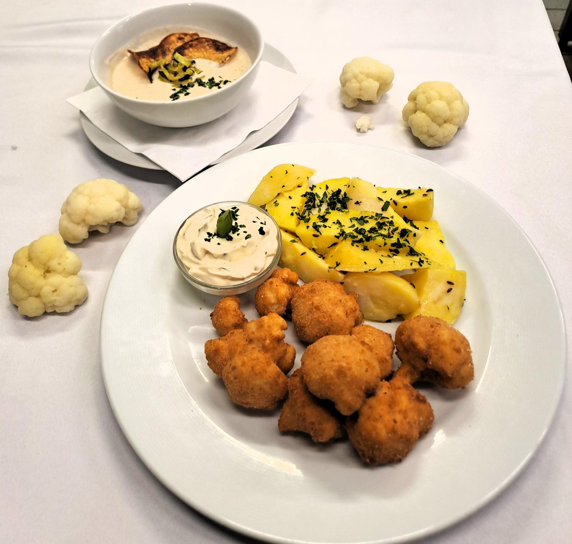 Dnes, 01. 12. 2025, Vás na denním menu čeká: Celerový krém s cuketou a bramborovými chipsy a Smažený...