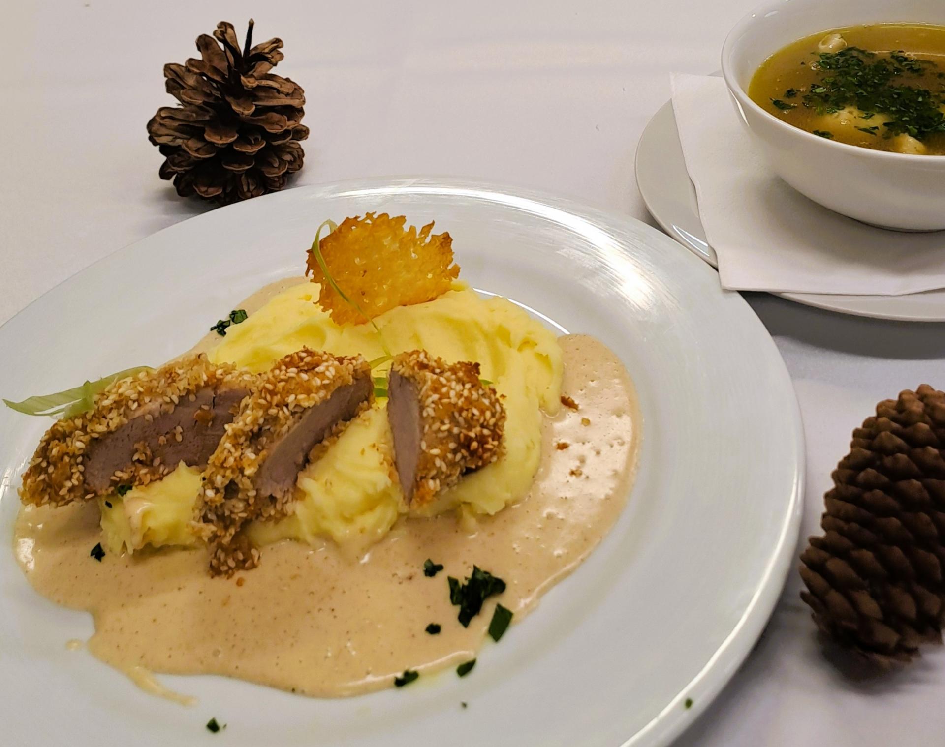 Dnes, 03. 12. 2025, Vás na denním menu čeká: Silný kuřecí vývar s drožďovými knedlíčky a Vepřová...
