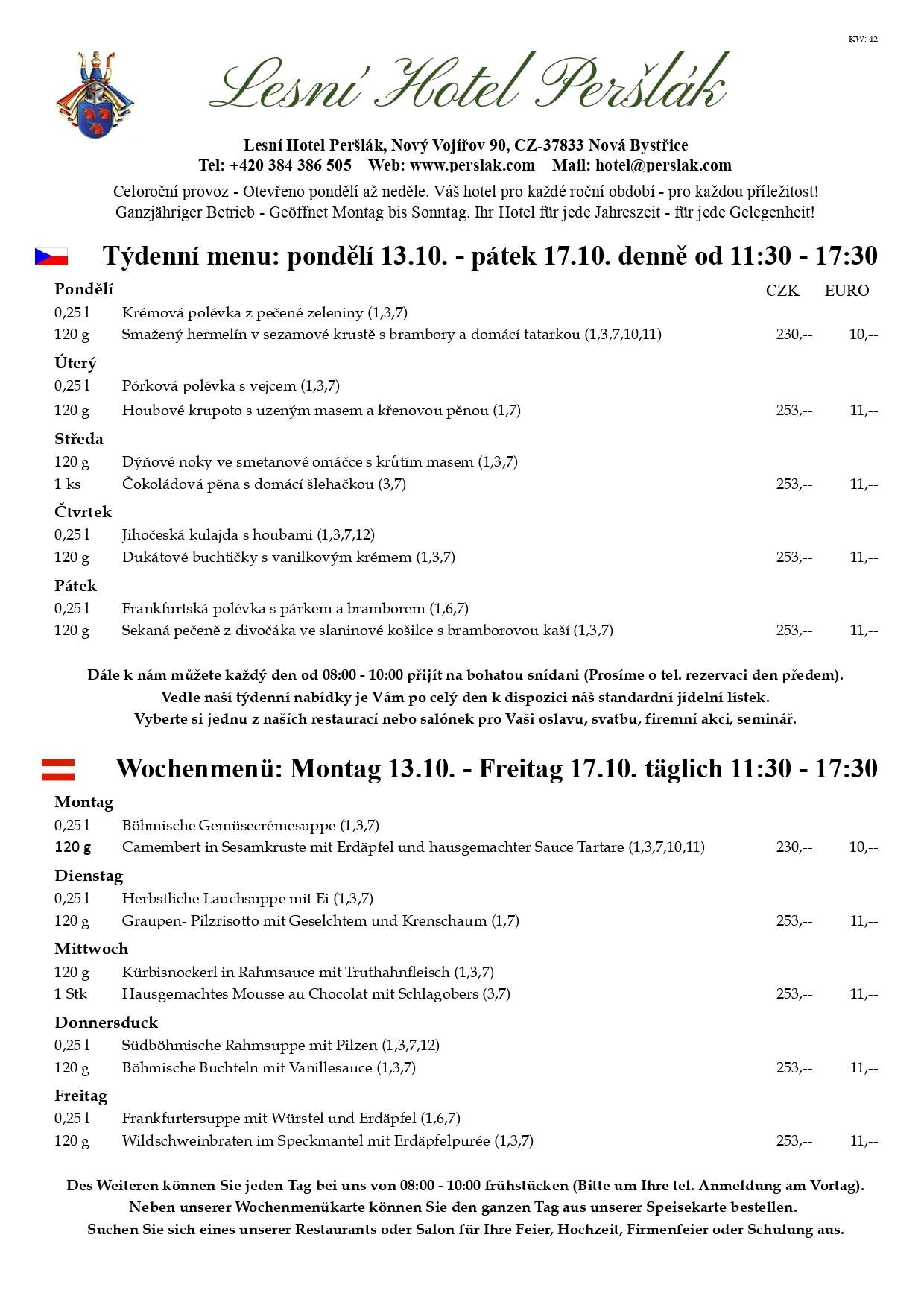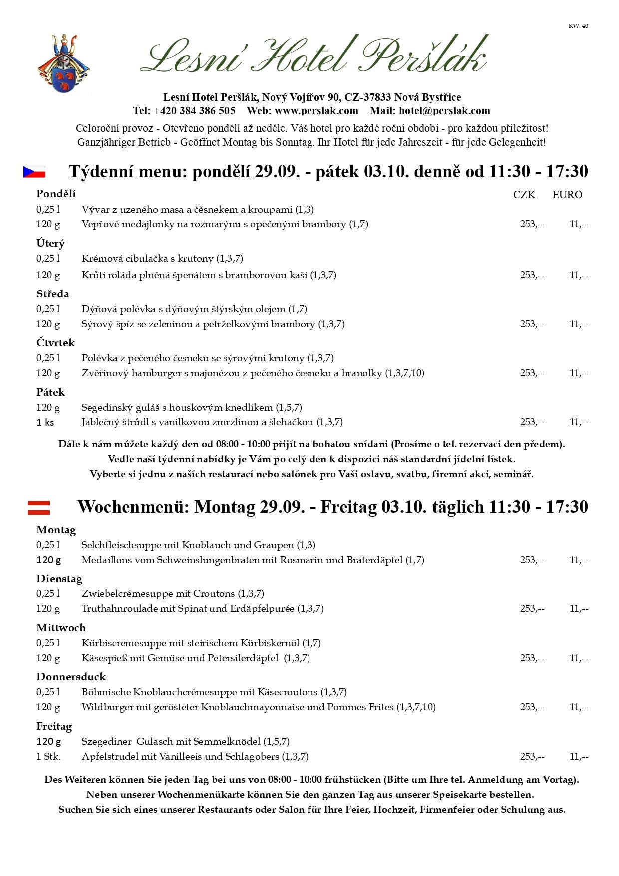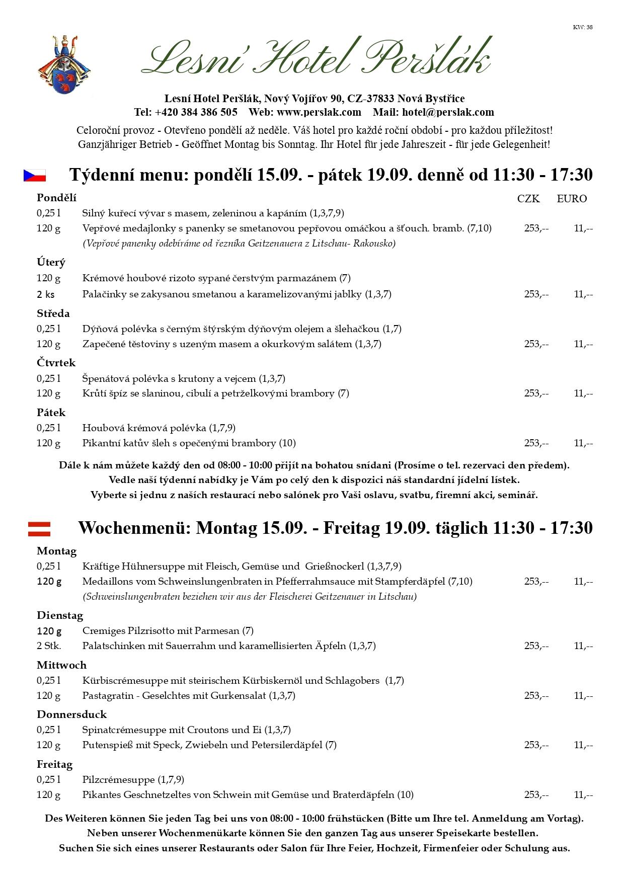 In unserem Wochenmenü finden Sie auch andere Früchte aus unseren Wäldern und Hainen. Nächste Woche können Sie unsere südböhmische Rahmsuppe oder Erdäpfelsuppe mit Pilzen kosten.