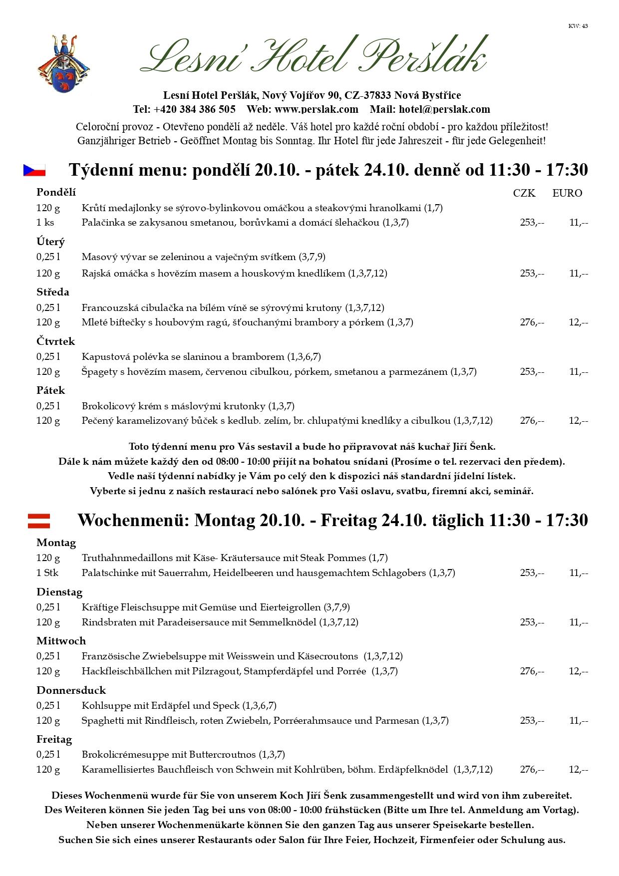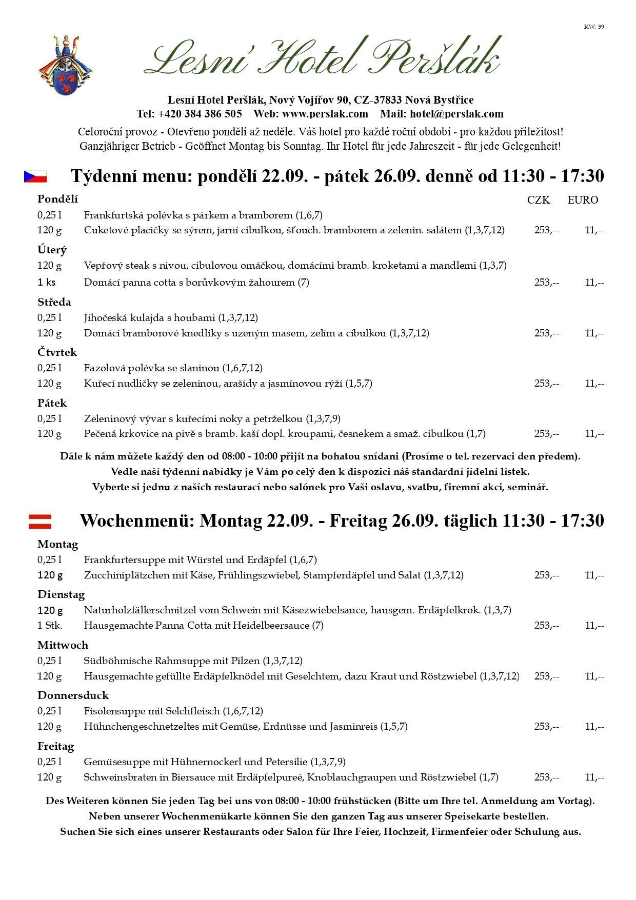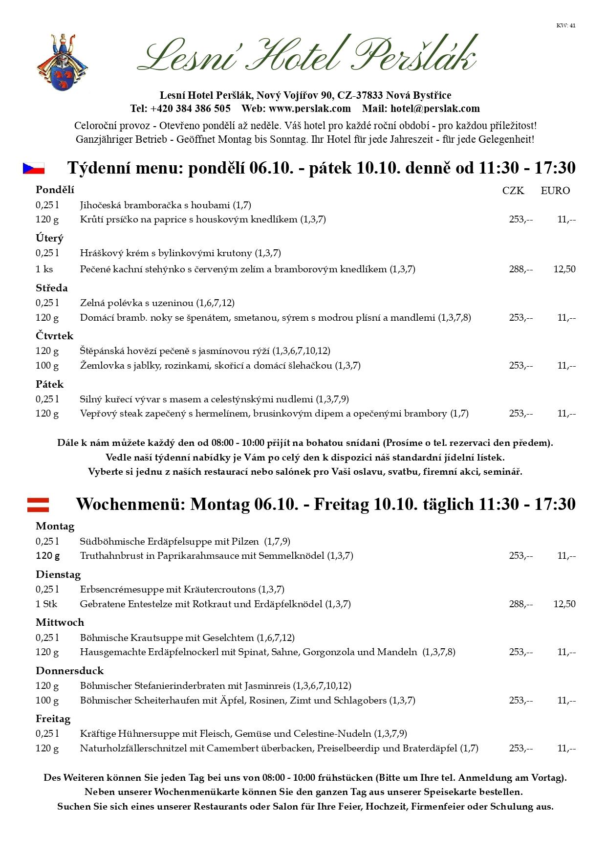 In unserem Wochenmenü finden Sie auch andere Früchte aus unseren Wäldern und Hainen. Nächste Woche können Sie unsere südböhmische Rahmsuppe oder Erdäpfelsuppe mit Pilzen kosten.