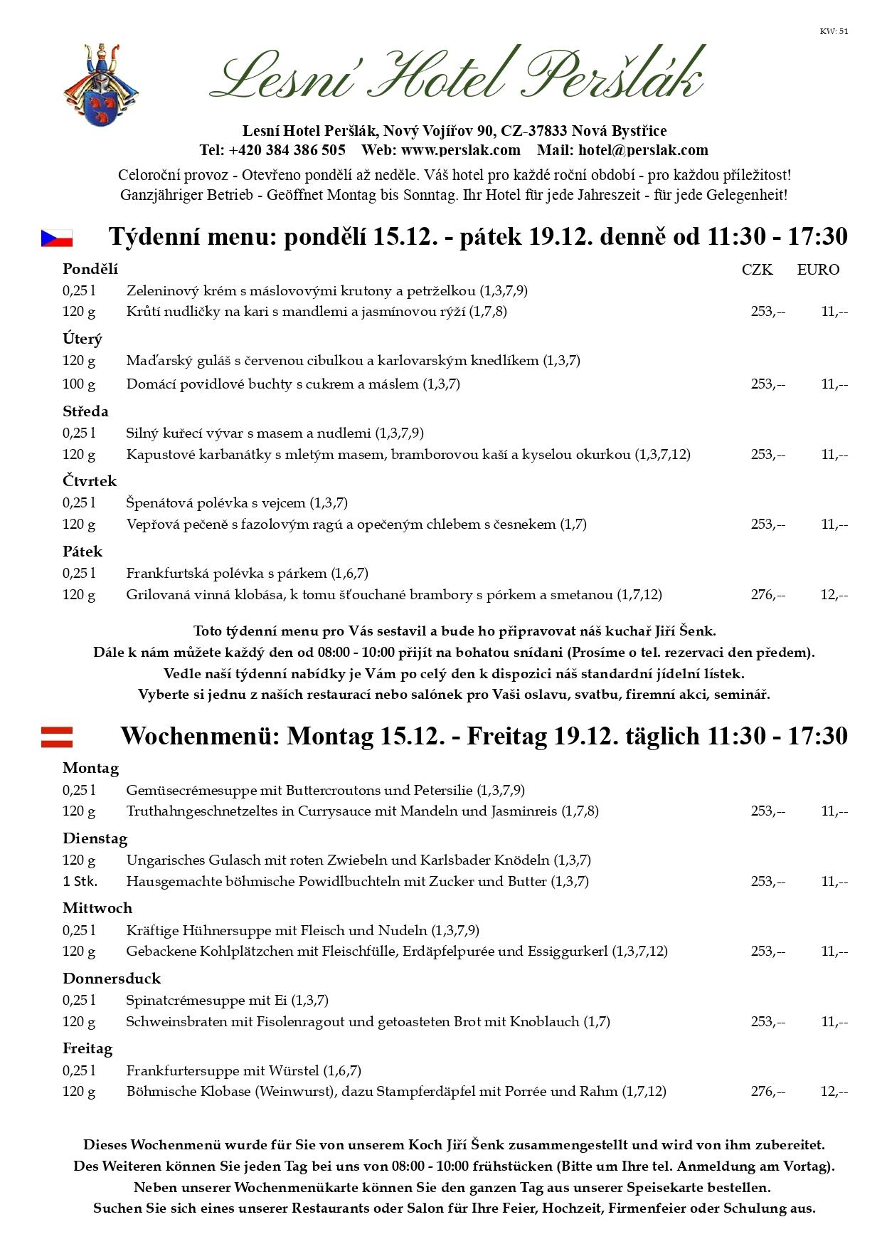 Týdenní menu 15.12.25 - 19.12.25