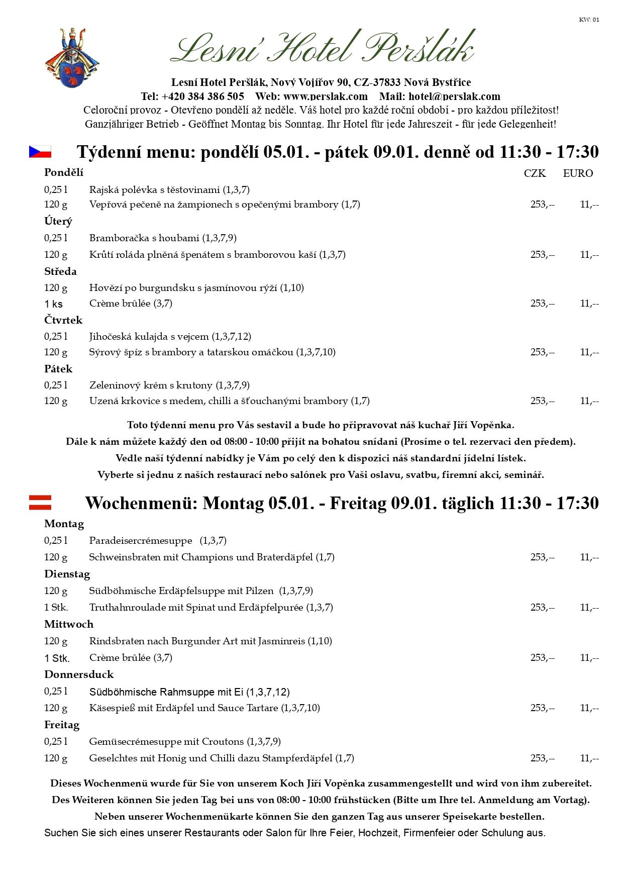 Týdenní menu 05.01. - 09.01.26