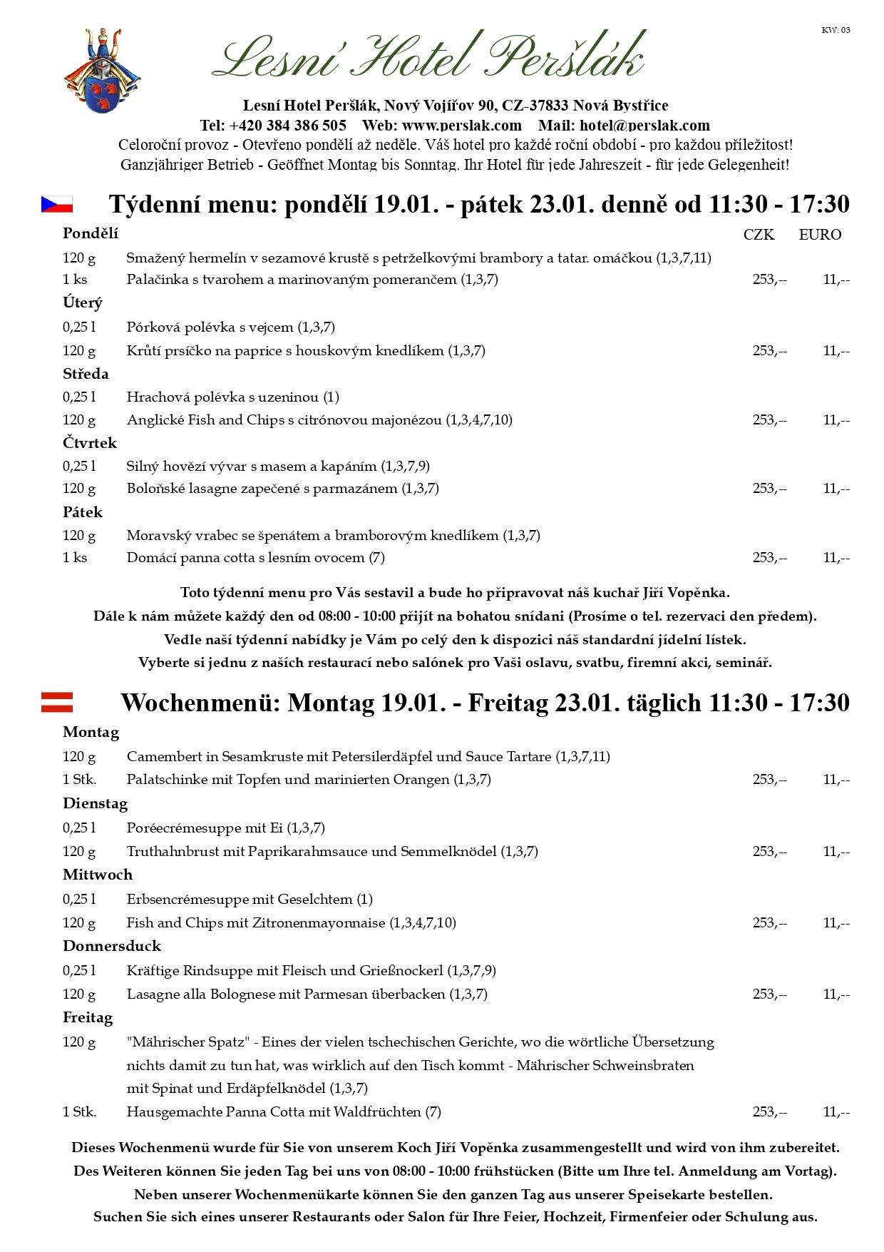 Týdenní menu 19.01.26 - 23.01.26