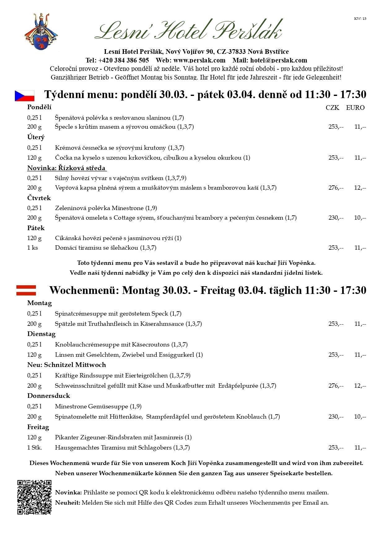 dnes, 20.03.2026, v 15:46 začne astronomicky jaro a bude jarní rovnodennost. Dorazí k nám zase jarní, krásně slunečné počasí nebo bude ještě vládnout zima a s ní i chlad? To se budeme muset nechat překvapit. S klidem a bez údivu ale můžeme očekávat, že se ve středu v našem menu objeví řízek, příští týden pro změnu plněný, a to mozzarellou, šunkou a chřestem.