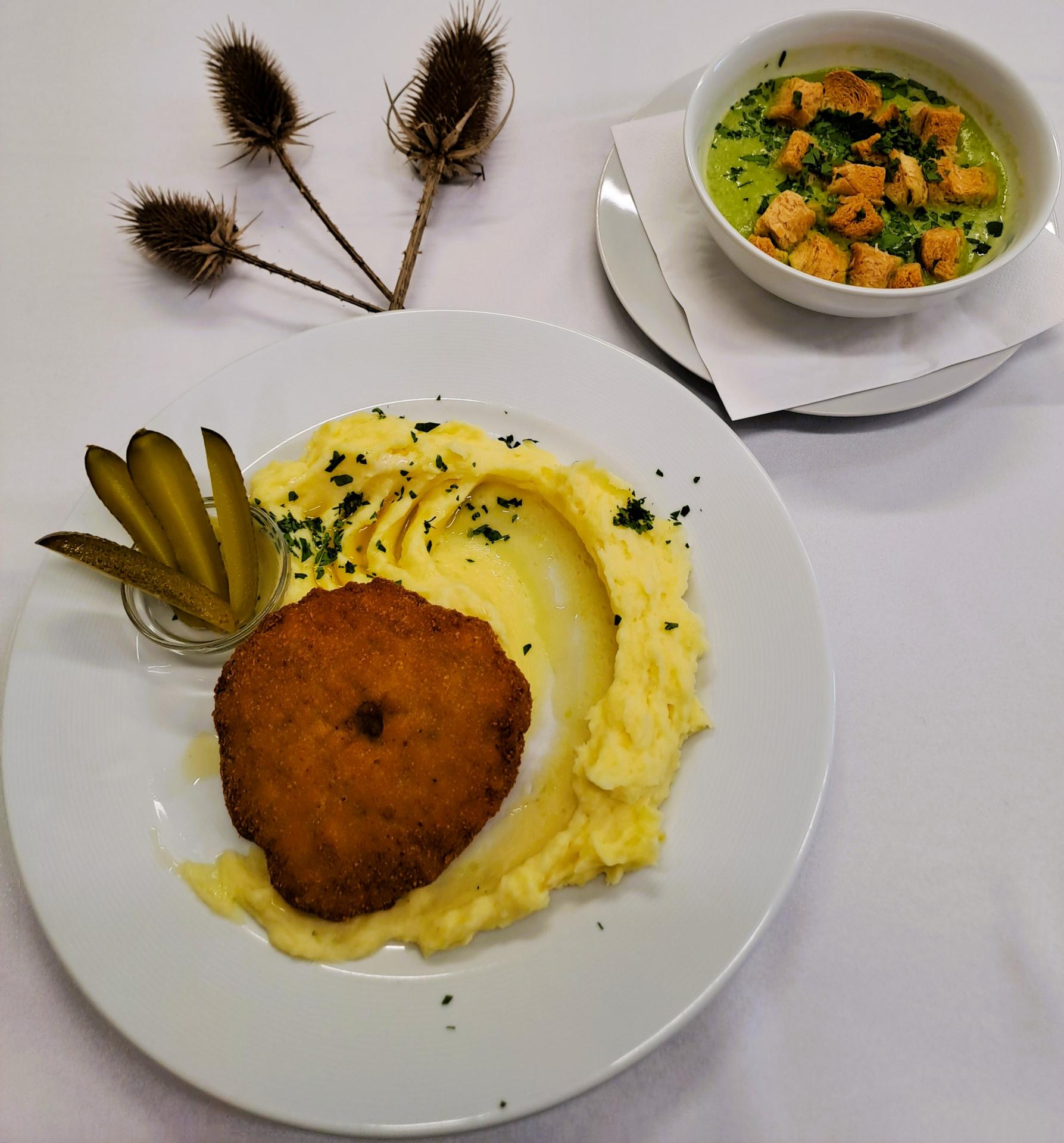 Dnes, 24. 11. 2025, Vás na denním menu čeká: Hráškový krém se sýrovými krutony a Holandský řízek se...