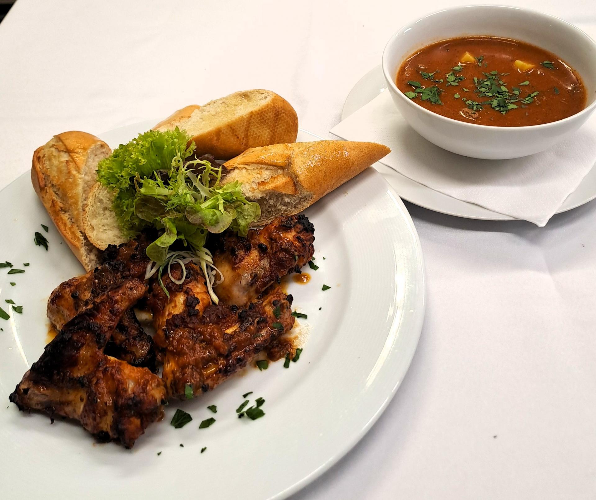 Dnes, 05. 12. 2025, Vás na denním menu čeká: Gulášová polévka s brambory a Čertovská pikantní kuřecí...