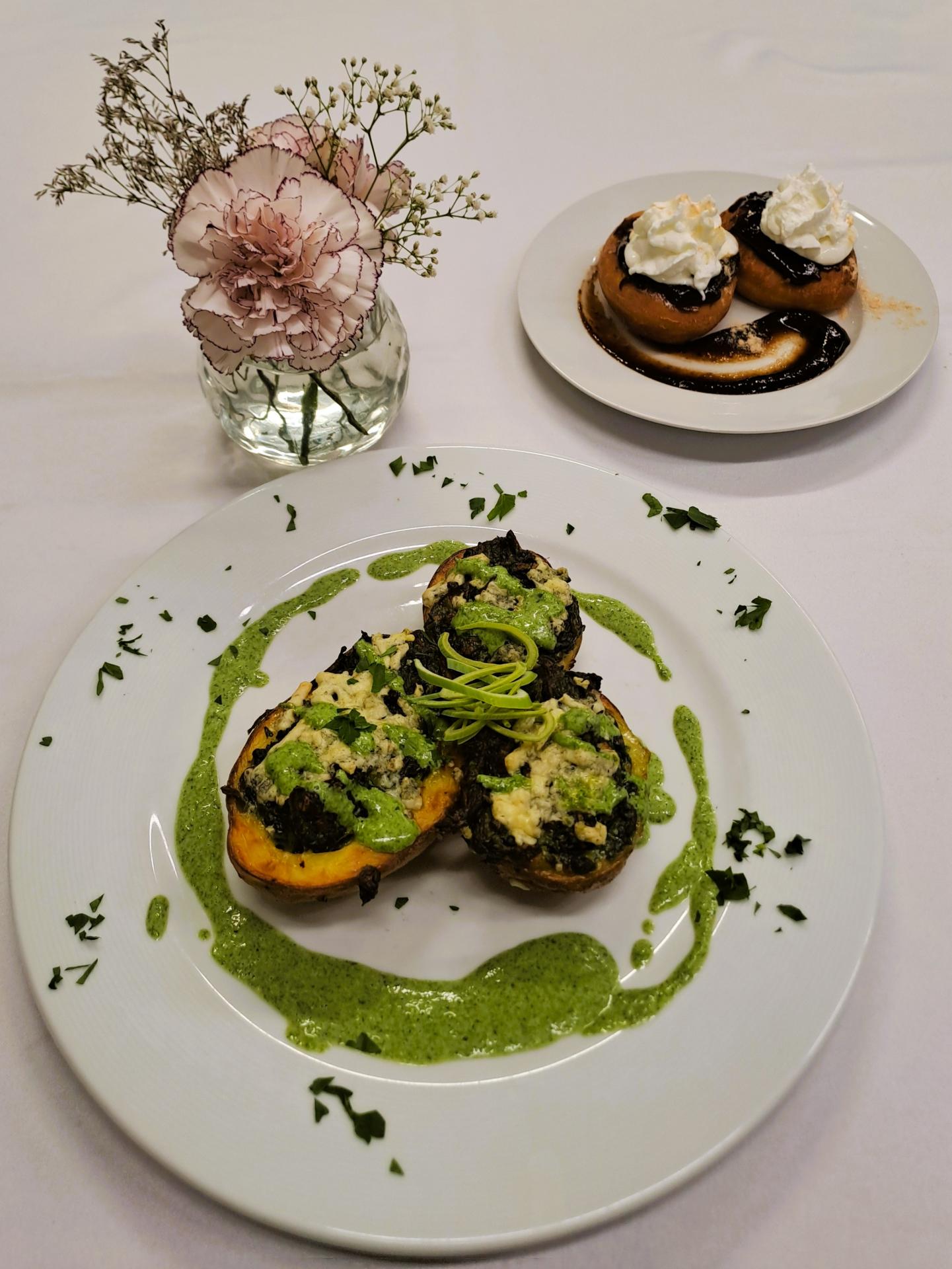 Pečené králičí stehno na smetaně s karlovarským knedlíkem a petrželkou